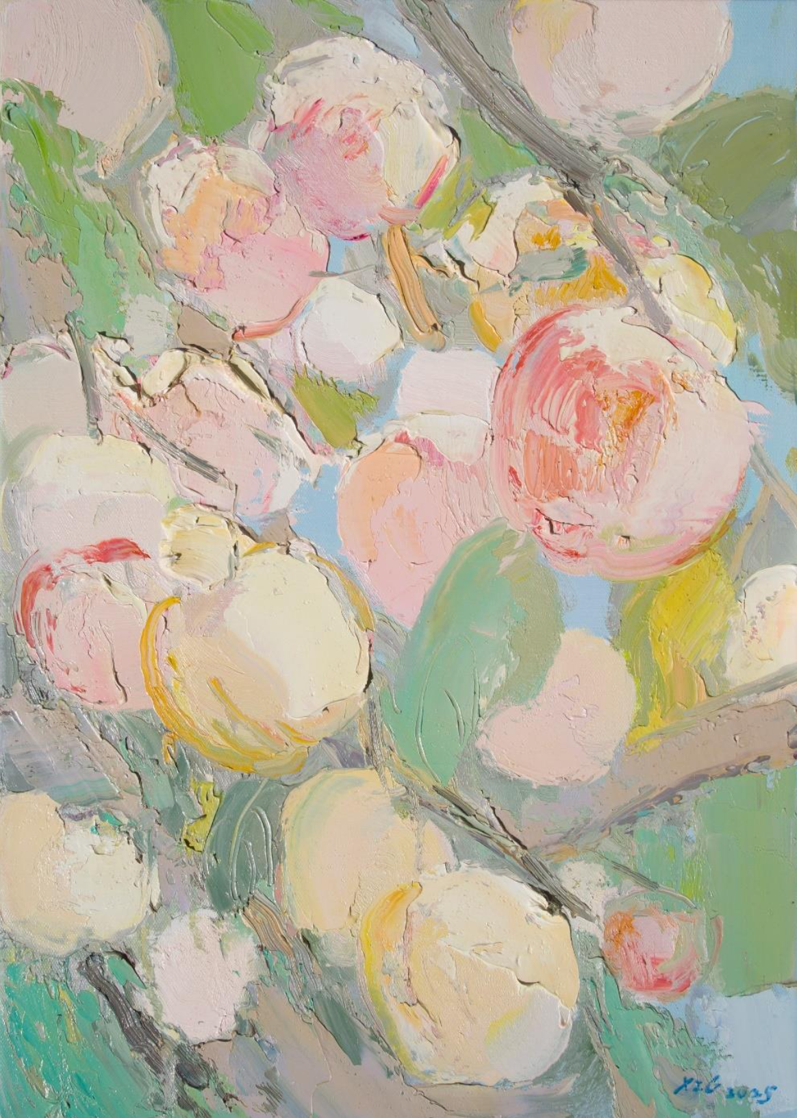 Artist Xu Zhiguang is a Chinese contemporary painter best known for his long-term engagement with apple trees and flowering branches as recurring subjects in his work. Through bold color, dynamic brushwork, and expressive composition, he transforms these natural motifs into powerful symbols of vitality, memory, and emotional intensity. Xu Zhiguang’s paintings balance spontaneity with structural strength, merging traditional Eastern sensibility with contemporary painterly language. His sustained exploration of the apple tree has become a defining feature of his practice, situating the motif as both a personal symbol and a broader reflection on life and renewal. His work has been widely exhibited and collected by museums and private collectors in China and internationally.